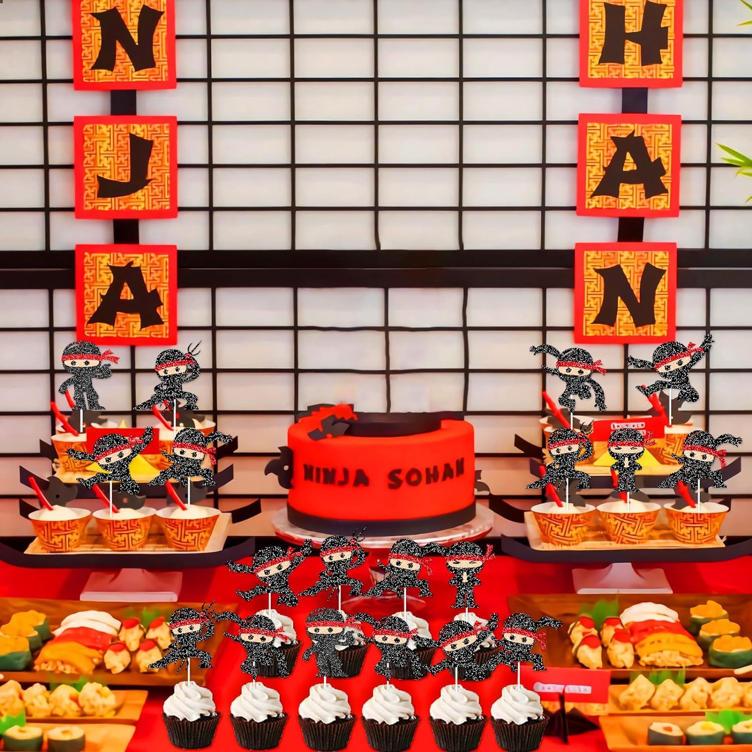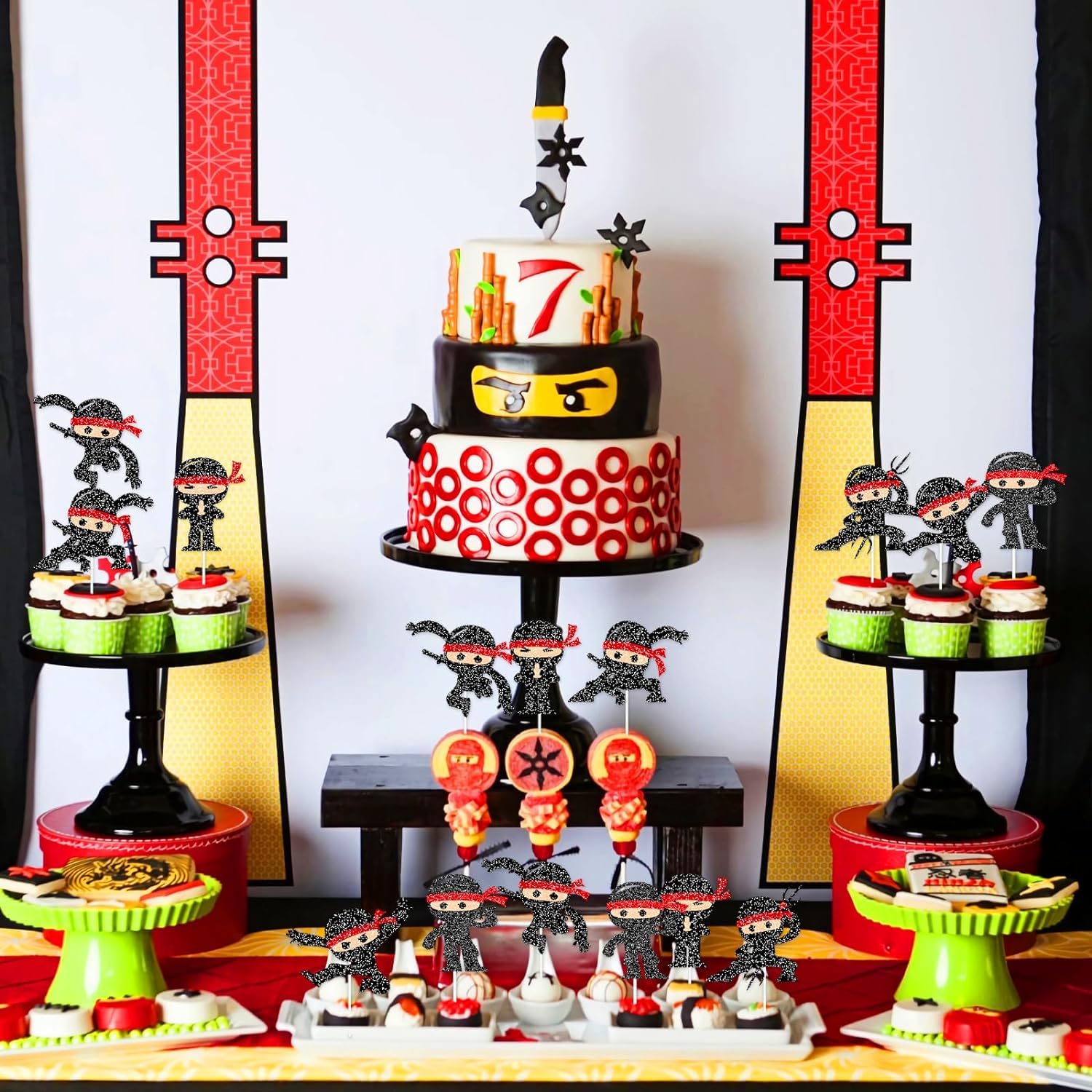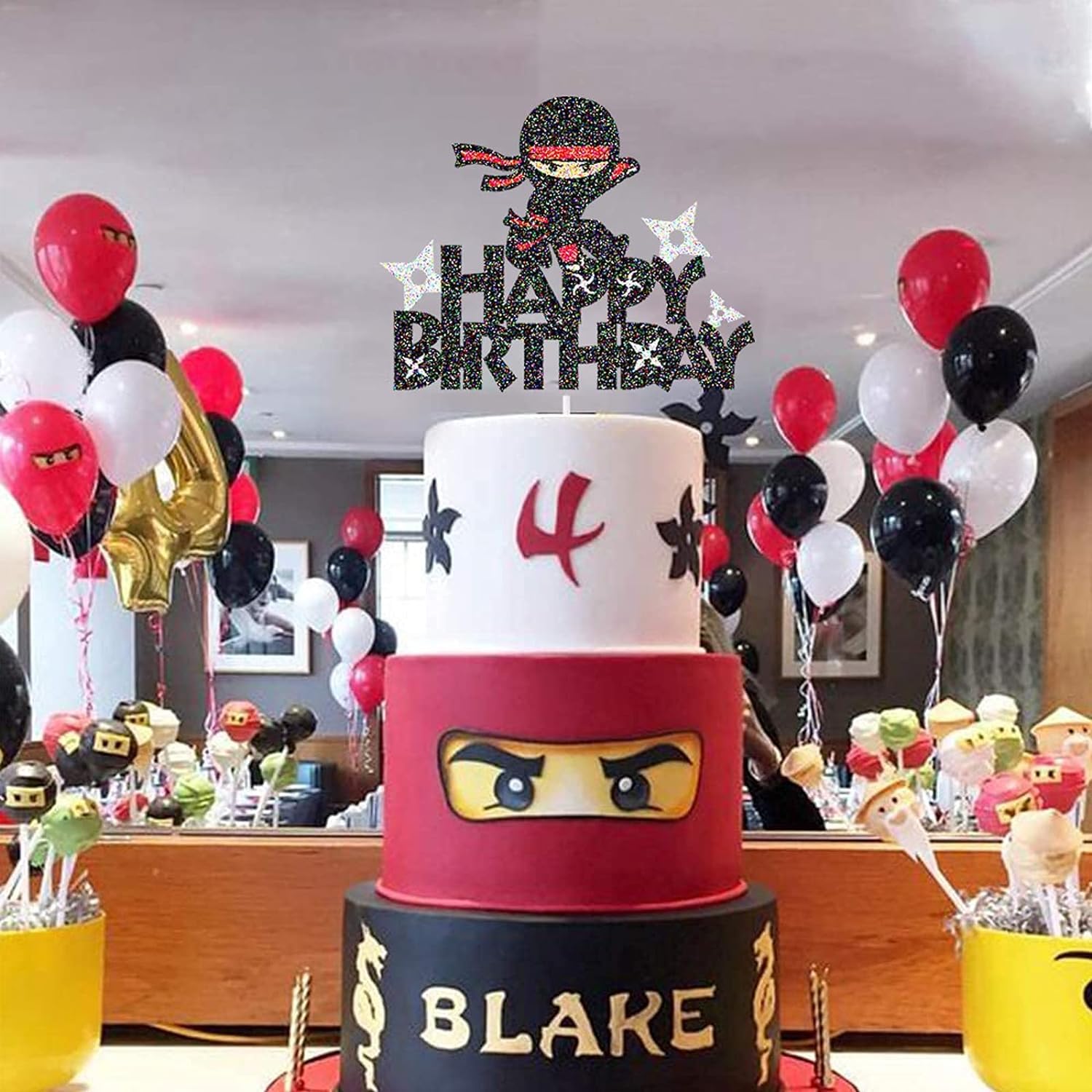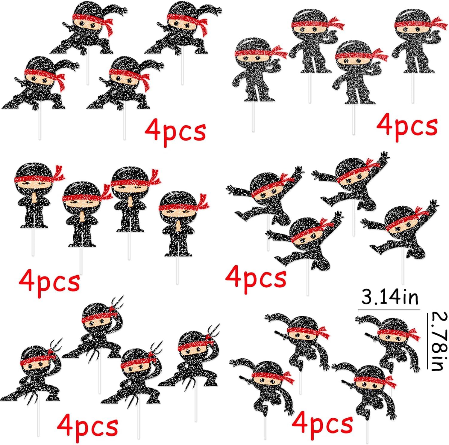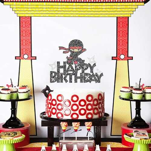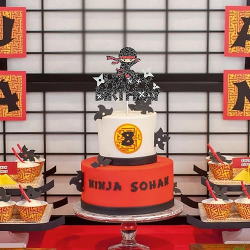 - π Elegant & Sparkling Design: Designed to captivate, this Ninja cake topper shines with its black glitter finish, bringing a spectacular shimmer to your party centerpiece.