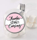 Details: Description Are you planning a baby shower, birthday party, wedding or graduation? Our thank you for coming stickers are the perfect way to add some style to your thank you gift or any: Graduation stickers for a graduation favor Birthday stickers for birthday favor Wedding stickers for Wedding favor Bridal stickers for bridal favor Baby shower stickers for a baby shower favor Thanks for celebrating with us stickers for any event! Our 1.6" round thank you lables are a perfect size to be attached to many items such as party candy, food containers such as take out boxes or popcorn boxes, party favors or even as envelope seals! Thank You For Coming To My Party Stickers Sure to impress your invited guests! Perfect for baby shower favors or wedding labels! Perfect to add some style to any party favors! Perfect to use as envelope stickers on your wedding invitations, birthday invitations or thank you cards. perfect for any event where thank you labels or thank you stickers are needed!