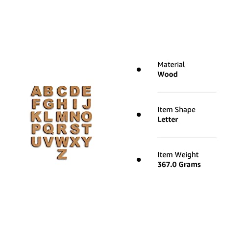 Details: Helps kids learn letters, spelling and pronunciation with this these wooden letters. Set contains a total of 104 pieces, with 4 pieces of each alphabet letter in a natural wooden color. Also excellent for craft projects, as party decorations, weddings, baby showers and so on. Put these letters together to spell whatever you want. Use these letters to decorate walls and doors to your liking. Your imagination is the limit.