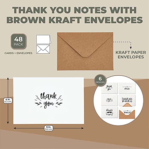 - Thank You Cards: Greeting cards set contains Pack of 12 / 24 / 48 festive cards with corresponding kraft paper envelopes; this value set comes with all the essentials you need to send warm wishes to your coworkers, friends, and family