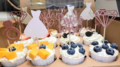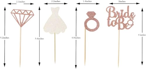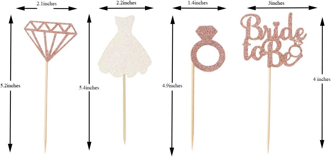 - π Package Includes: With a total of 24 pieces, our cupcake topper set includes 6 rose gold diamond ring picks, 6 rose gold diamond picks, 6 white wedding dress picks, and 6 bride to be picks, creating a cohesive and visually appealing display at your bridal shower, engagement, or wedding event.